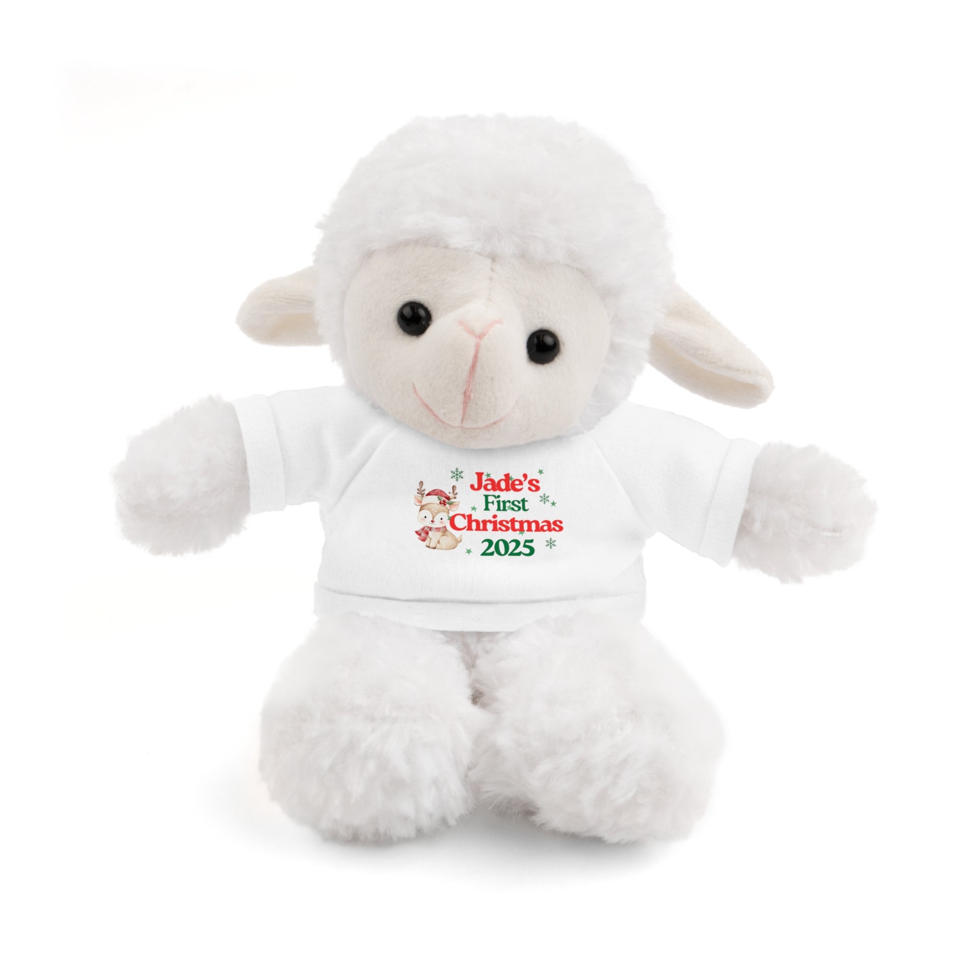 Personalize Christmas Teddy Bear Lion Bunny Panda Lamb Stuffed Animal with Tee Baby's First Christmas