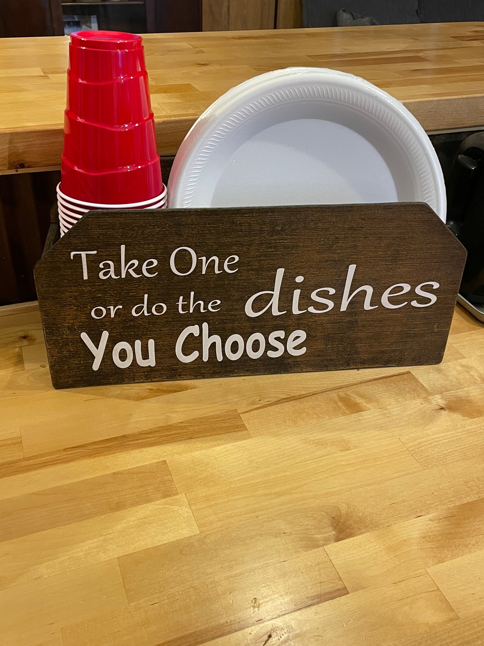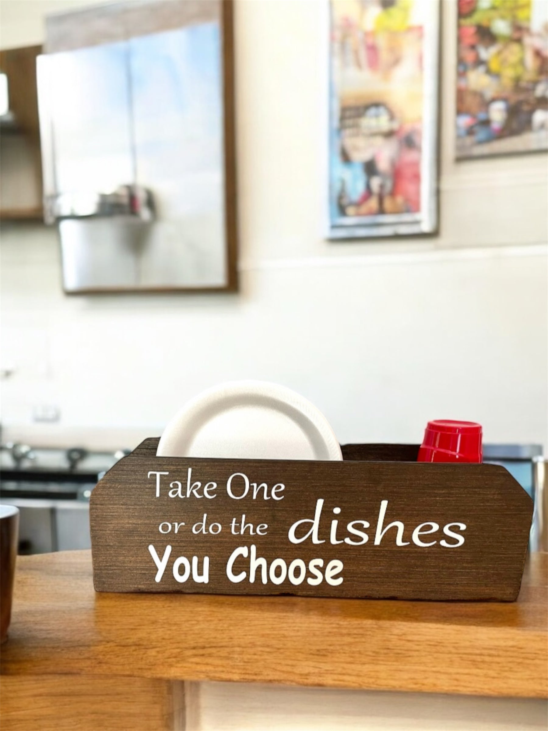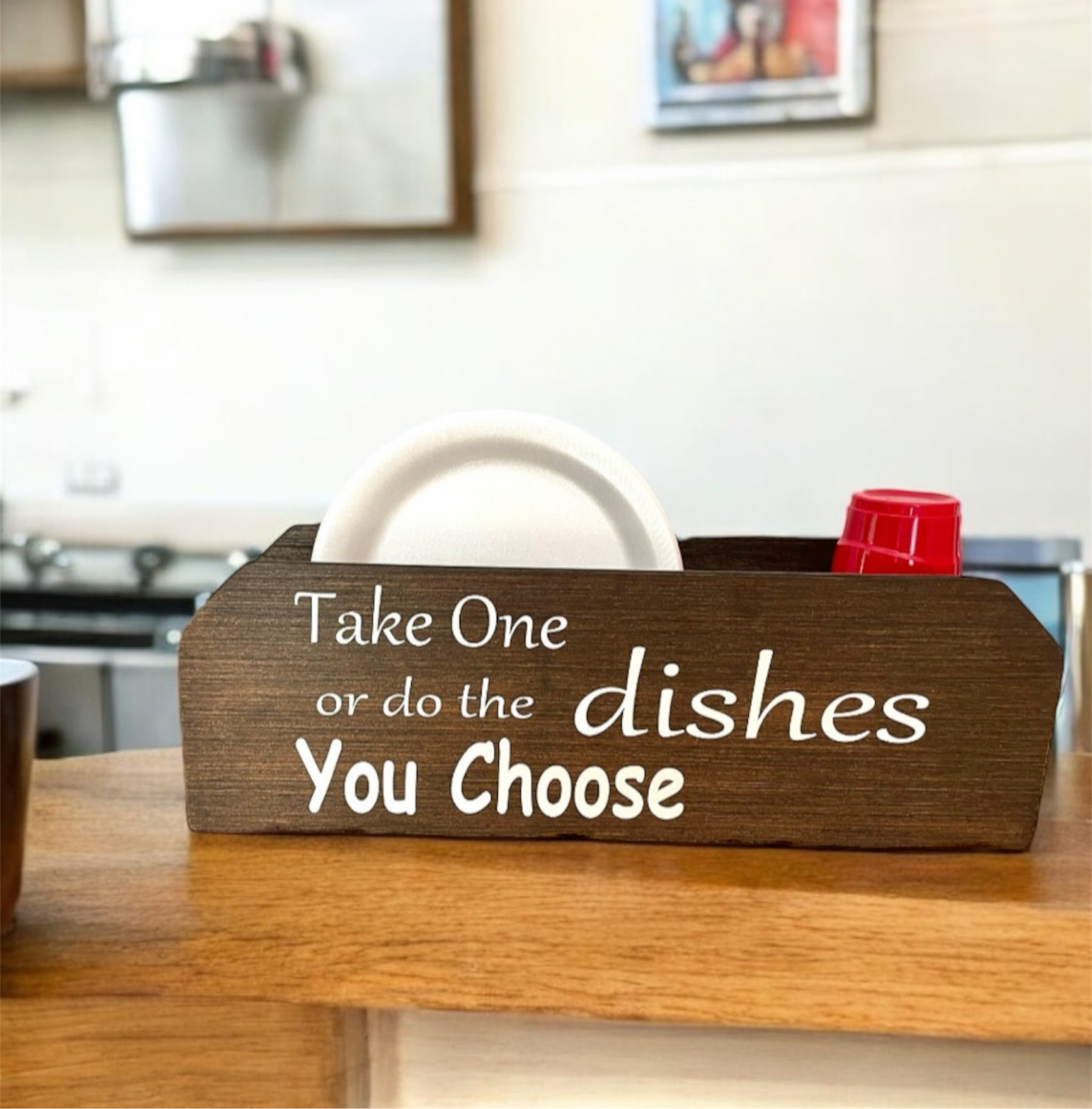 Take One or Do the Dishes You Choose paper plates and cup caddy