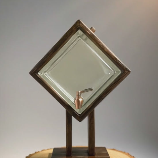 The stand is made of pine, and the decanter/glass is a glass building block (8” x 8” x 3") or (6"x6"x3"). * The spigot is made up of food-grade rustproof premium 304 stainless steel, and the stopper is wooden.